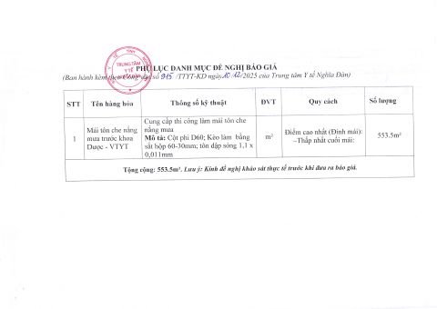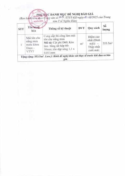 Cung cấp thi công làm mái che bằng khung hợp sắt lợp mái tôn trước khoa Dược, trung tâm Y tế