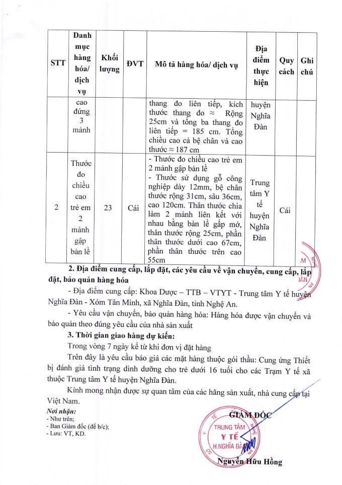 YÊU CẦU BÁO GIÁ THIẾT BỊ ĐÁNH GIÁ TÌNH TRẠNG DINH DƯỠNG CHO TRẺ DƯỚI 16 TUỔI